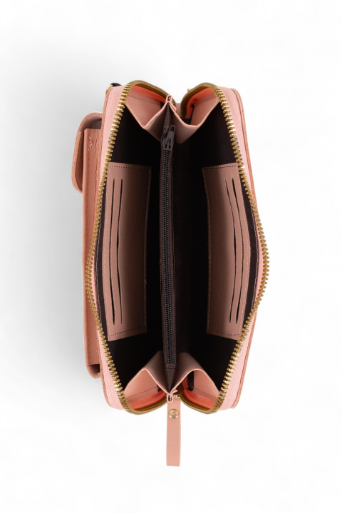 Дамска чанта в розово, тип портмоне с дълга дръжка