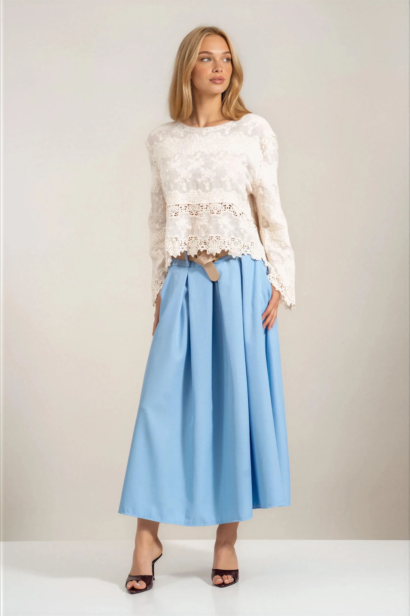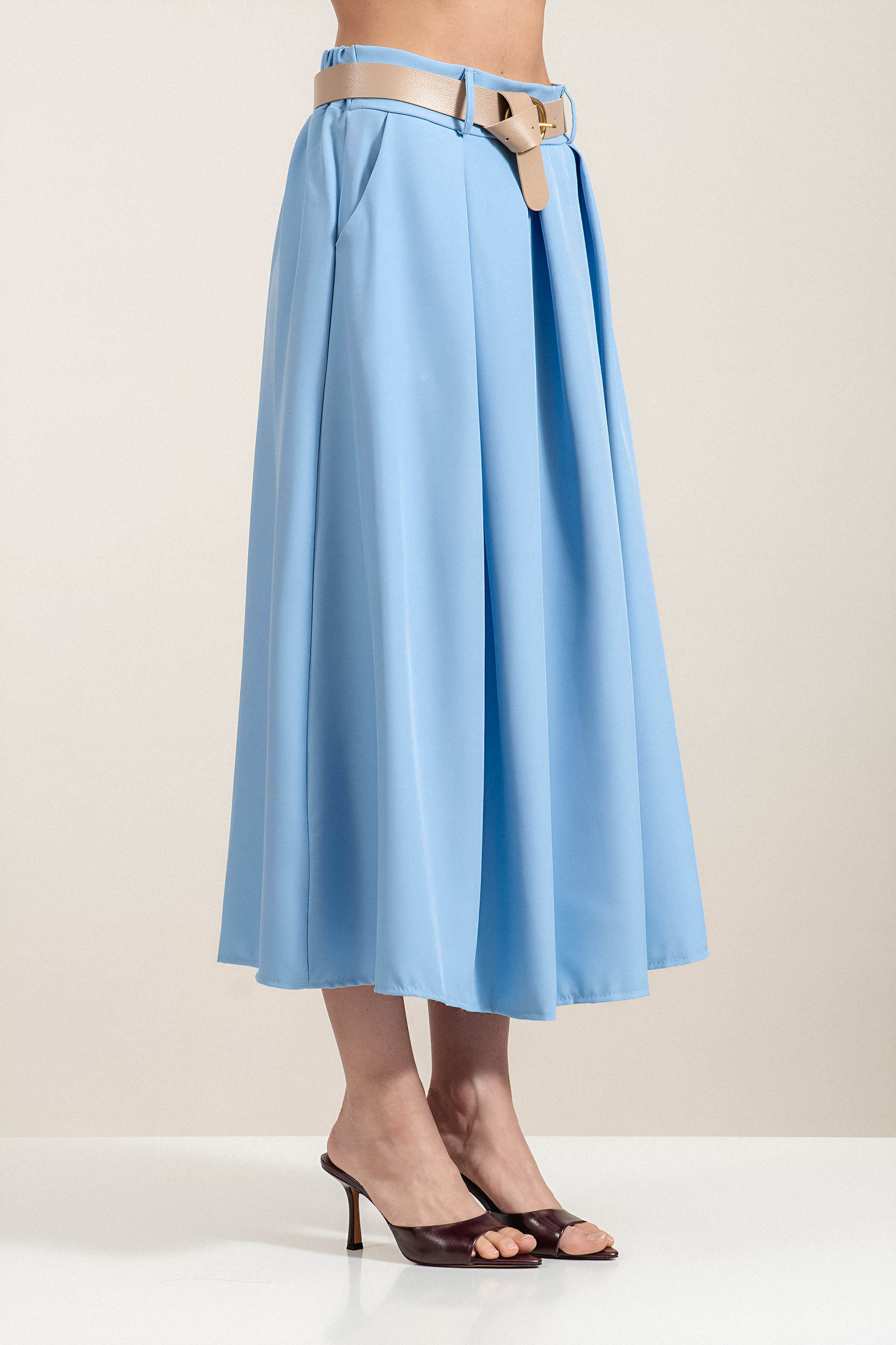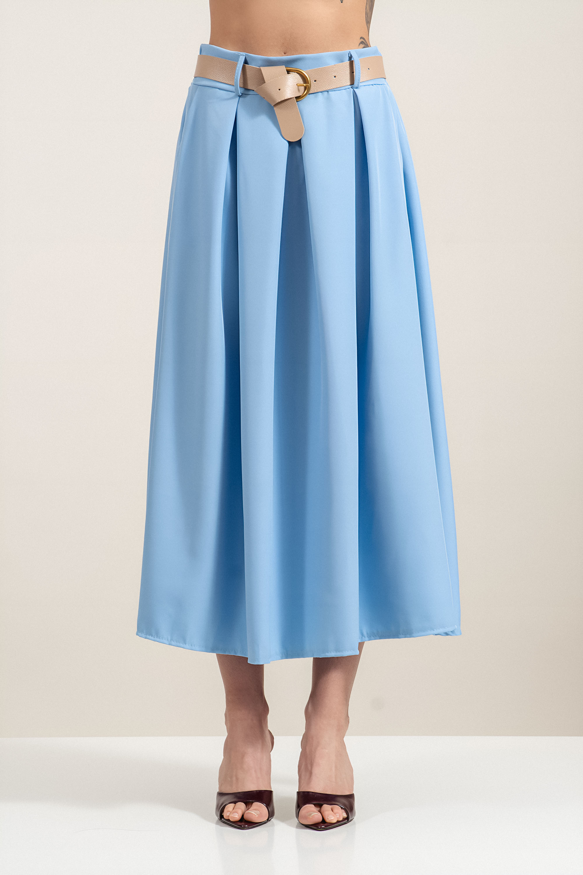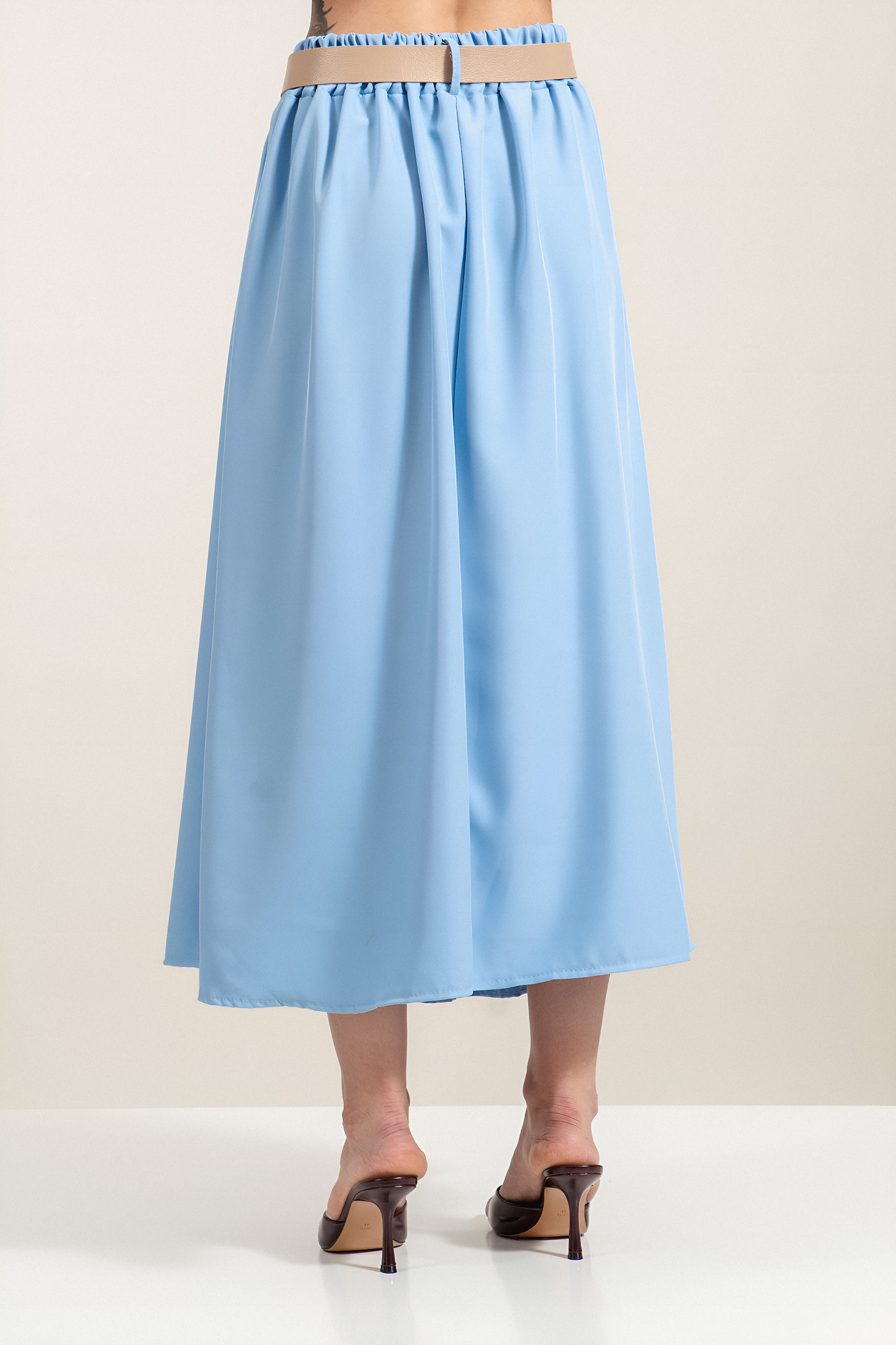 Миди пола в светлосиньо с висока талия и допълнителен колан