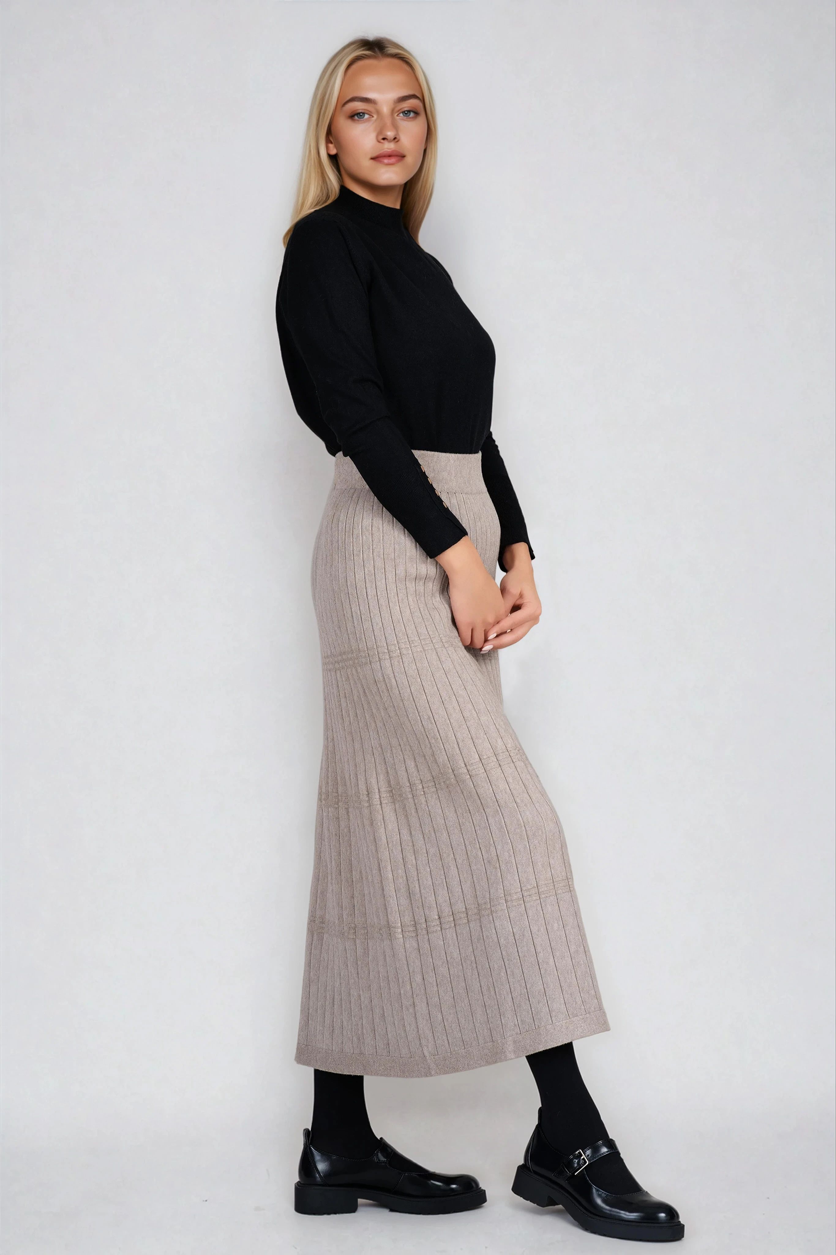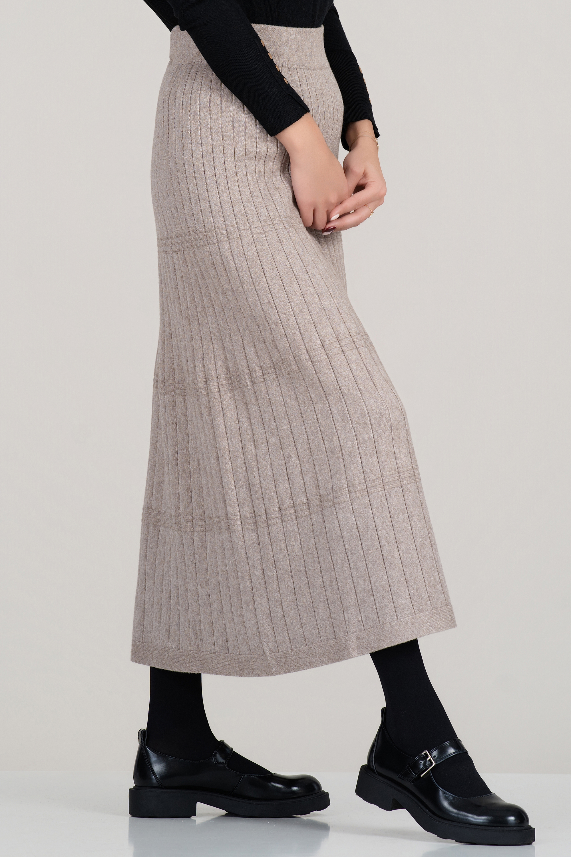 Пола от фино плетиво в цвят визон с релефен едър рипс