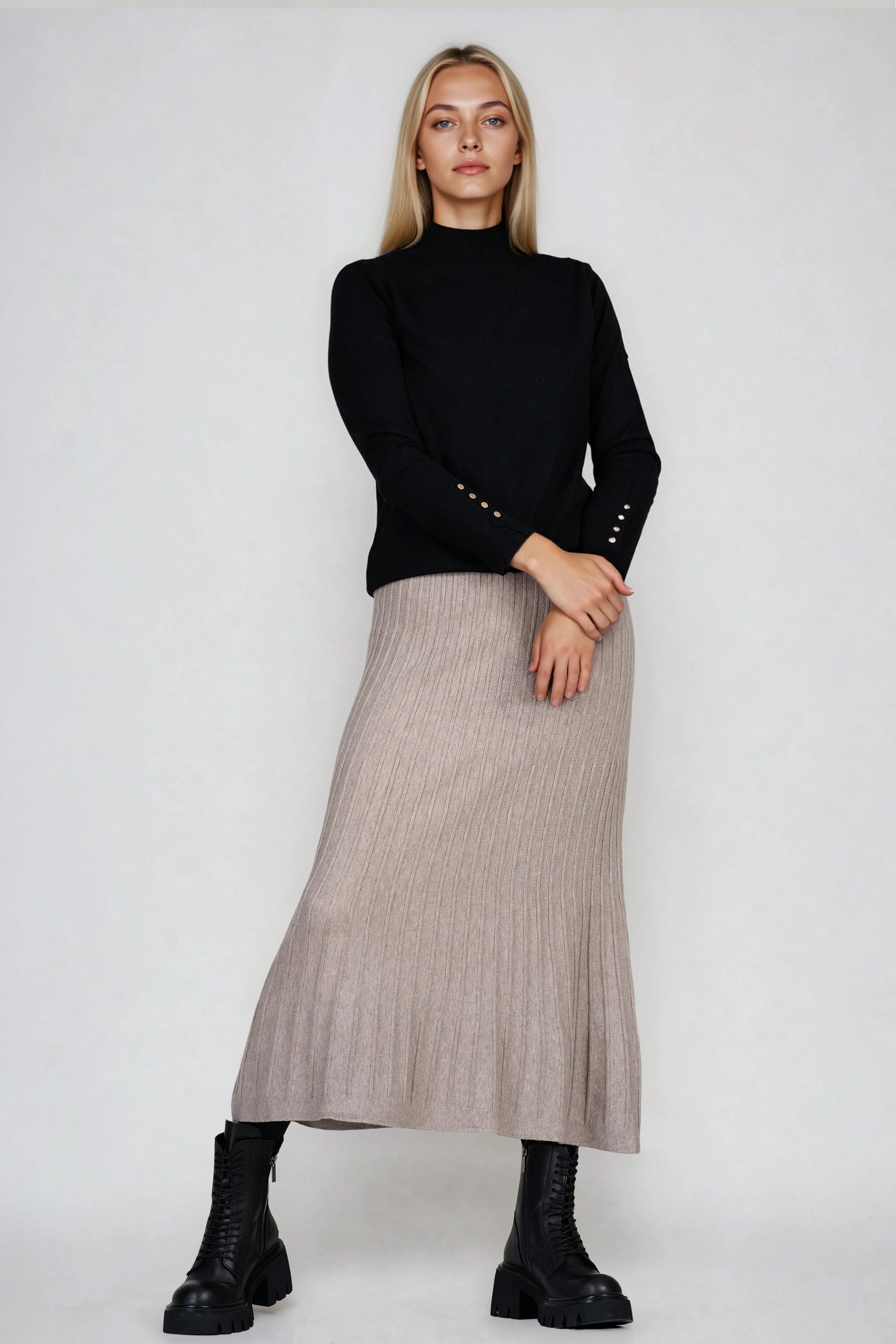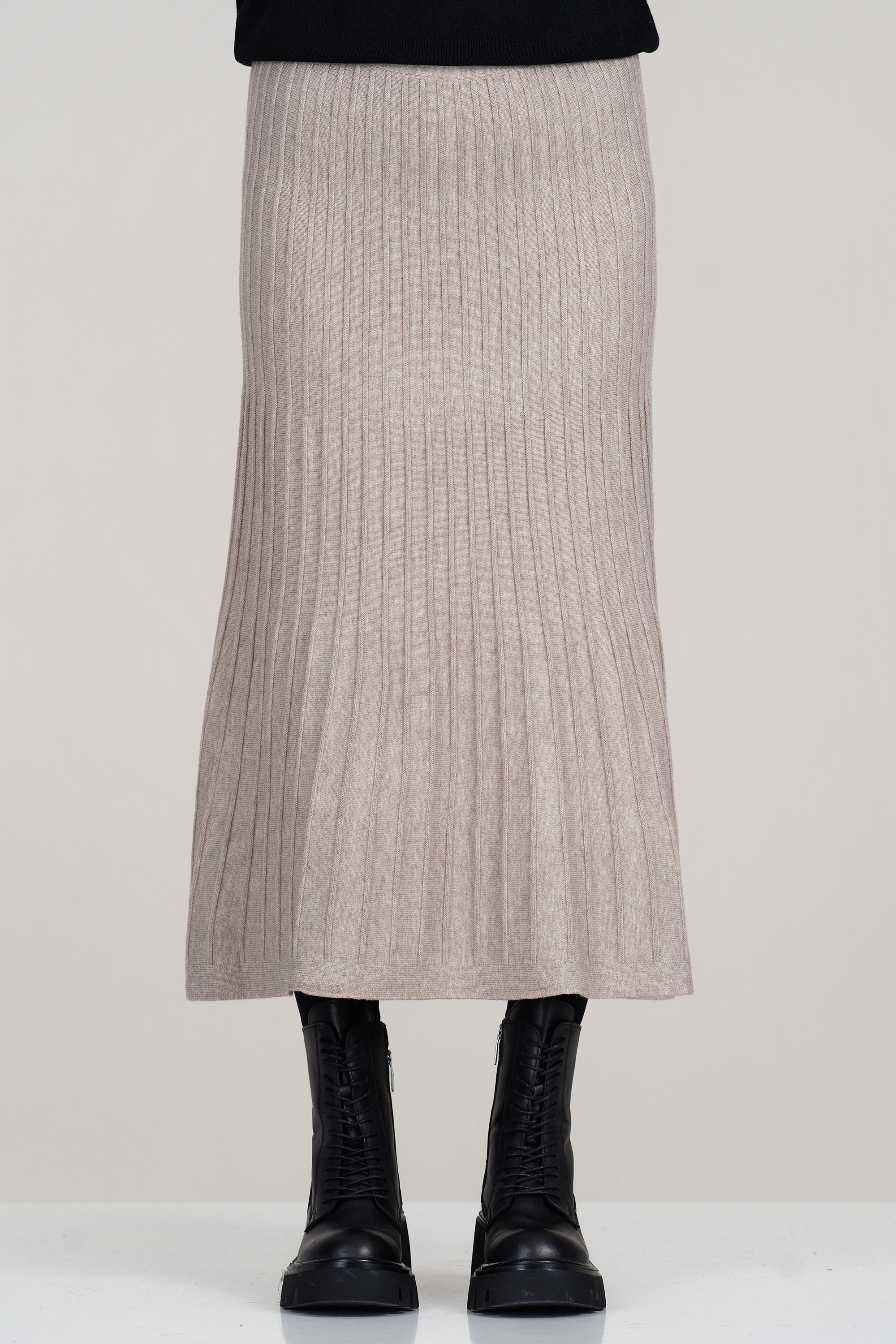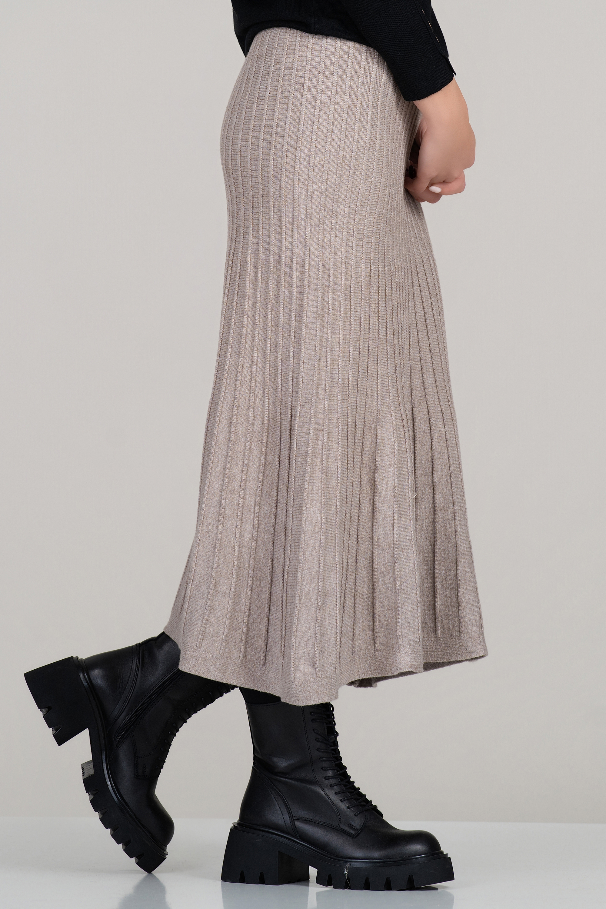 Пола в цвят визон от еластично фино плетиво с релефна текстура