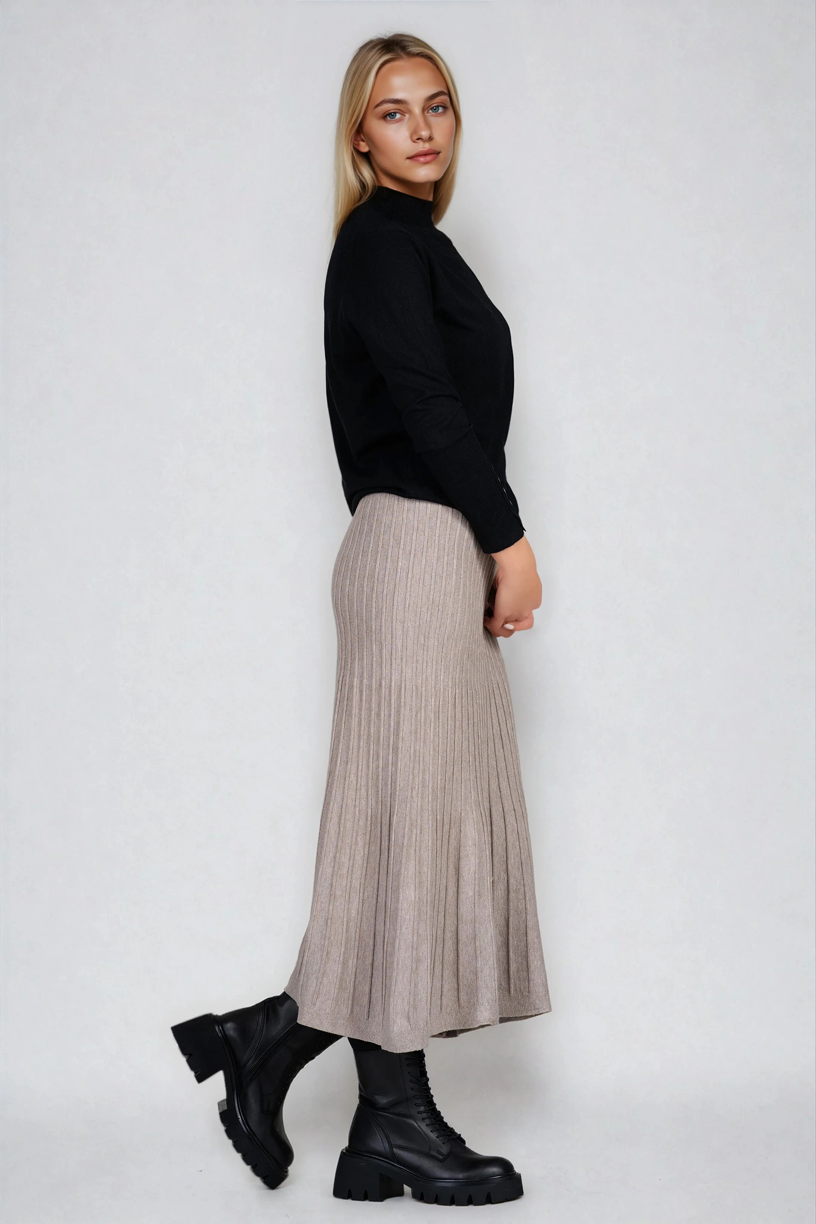 Семпла, но изключително елегантна, тази пола от плетена текстура е подходяща за хладните сезони. Еластичният рипс осигурява комфорт и адаптивност, докато вертикалните плисета придават модерна и издължена визия. Моделът е лесен за съчетаване с различни топове и връхни дрехи.