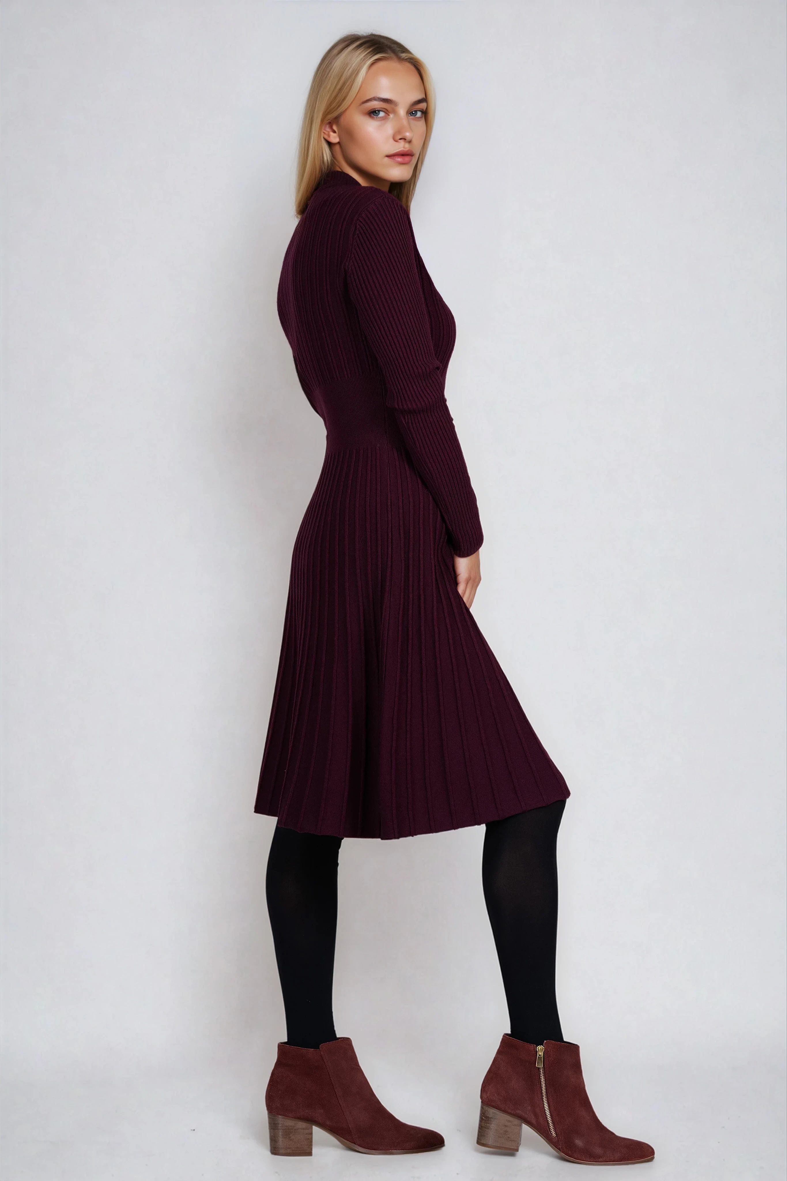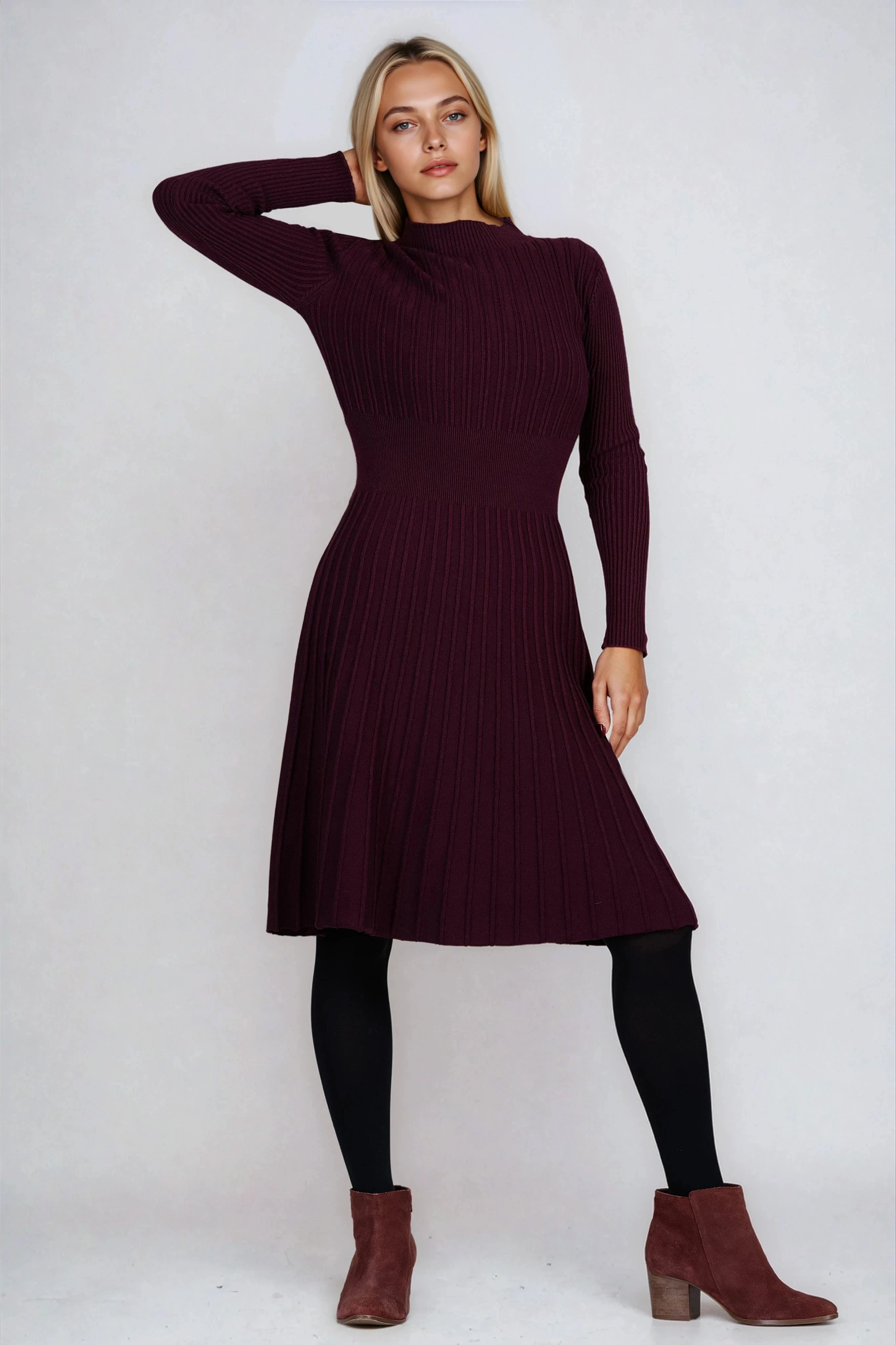 Рокля с вталена кройка, изработена от меко италианско плетиво с рипсена структура. Ефектният цвят подчертава есенния характер на модела и оформят женствена линия. Идеален избор за офиса или ежедневни визии в хладно време.