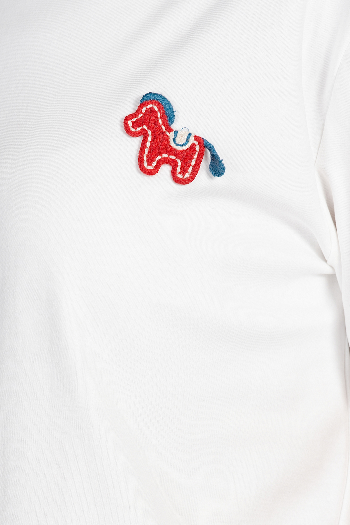 Дамска тениска от памук в бяло с обло деколте и бродерия конче